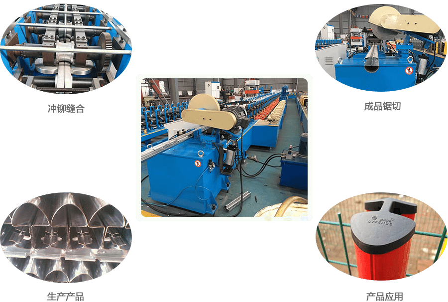 開卷—導(dǎo)向、輥壓成型、液壓沖鉚、液壓沖缺口—成品鋸切切斷—出料