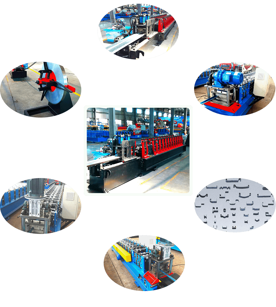 開卷—導(dǎo)向進(jìn)料—輥壓成型—沖孔切斷—托板出料
