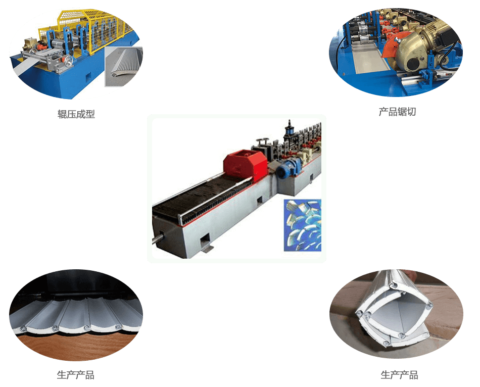 開(kāi)卷—導(dǎo)向進(jìn)料—輥壓成型(加熱、PU澆注、固化)—飛鋸切斷—出料