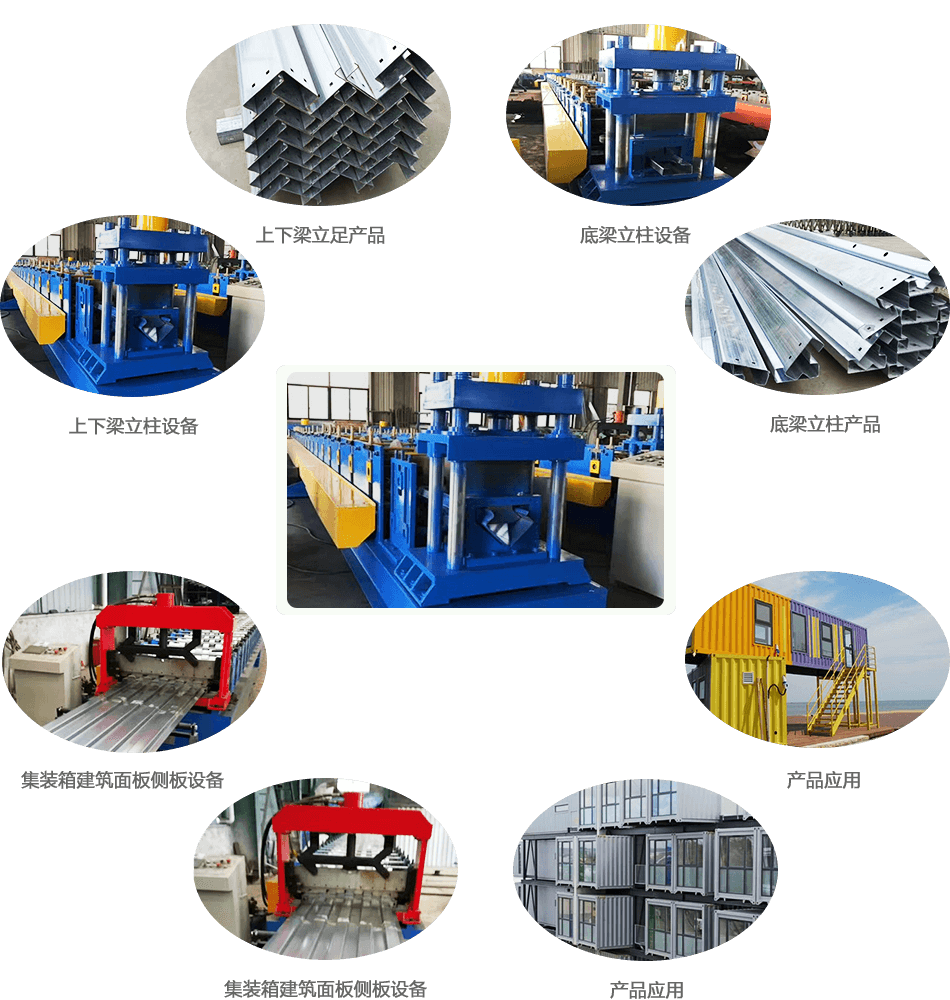 立柱設(shè)備:開(kāi)卷→引料校平→平板沖孔→輥壓成型→仿型剪切→托料出板